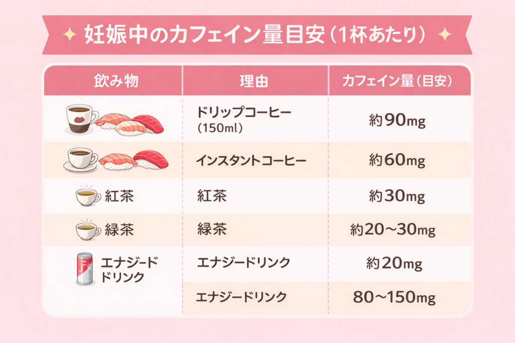 カフェインは胎盤を通過し、胎児に届きます。