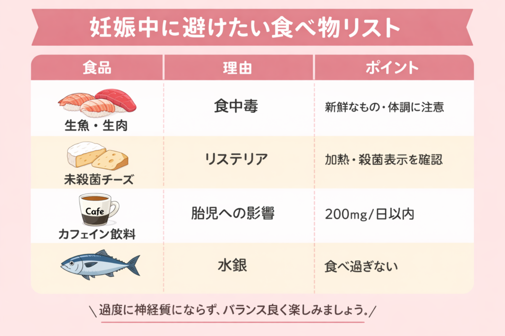 「妊娠中に注意が必要な食べ物」を理由つきでわかりやすく整理します。
